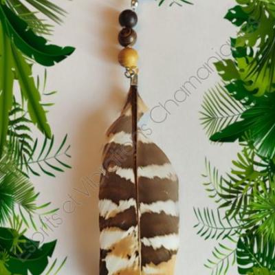 Pendentif en plumes de paon , bois, tourmaline EXTRA