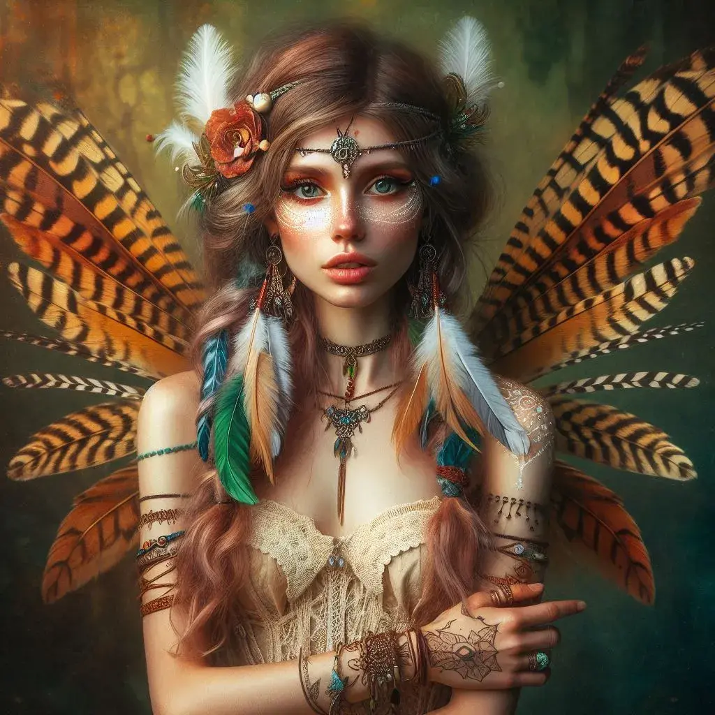 composé de plumes de faisan, ornements en alliange et attaches en acier inoxydable, et perle...