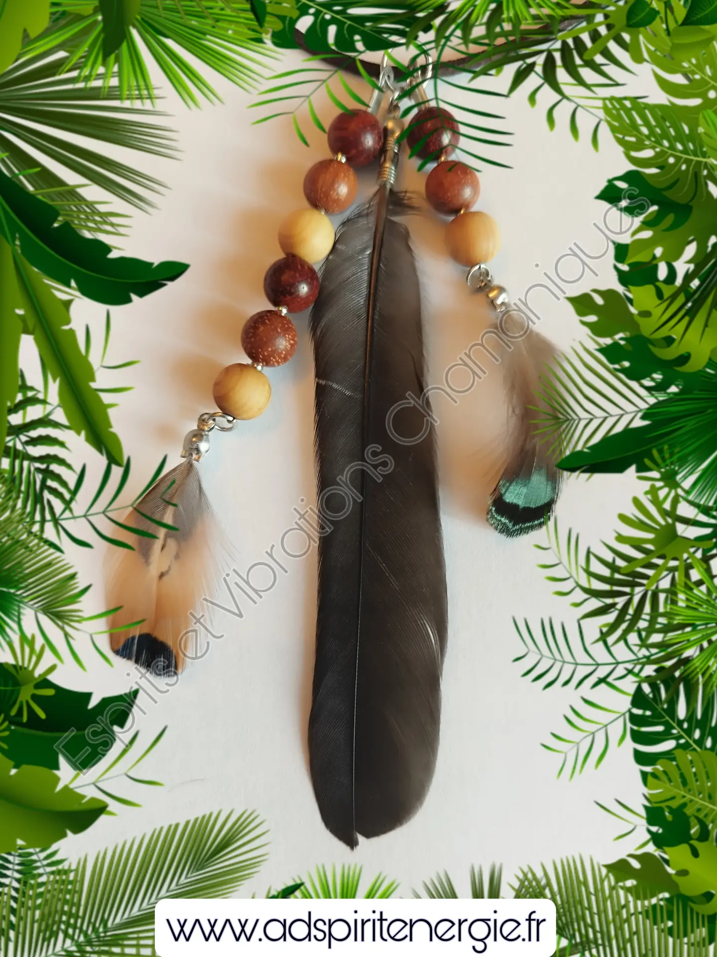 véritable plume de canard, merle et poulet avec perle en bois et acier inoxydable