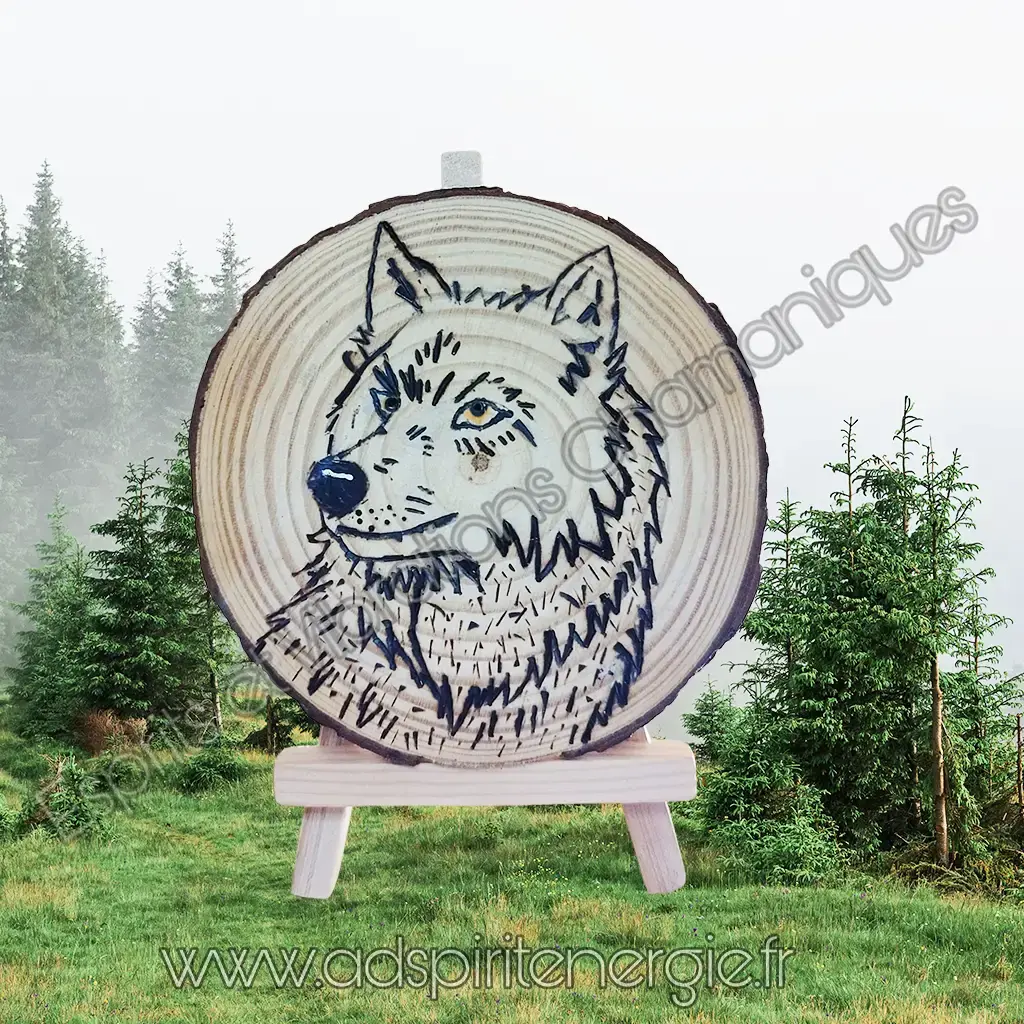 bois totem animal pouvoir pyrogravure deco personnalisé loup