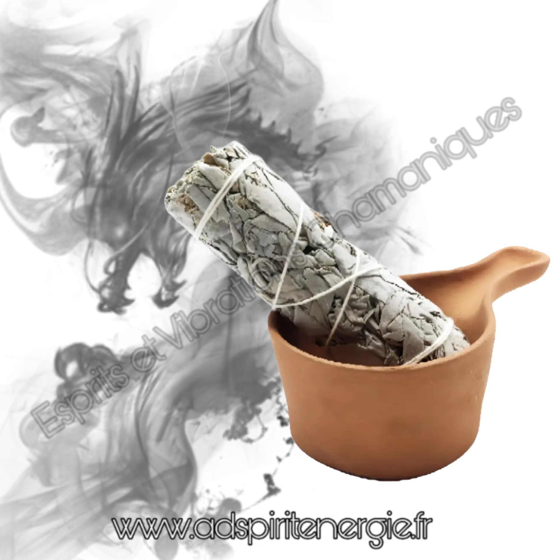 Brûleur en terre cuite pour une fumigation de sauge, encens, palo santo ou herboristerie.