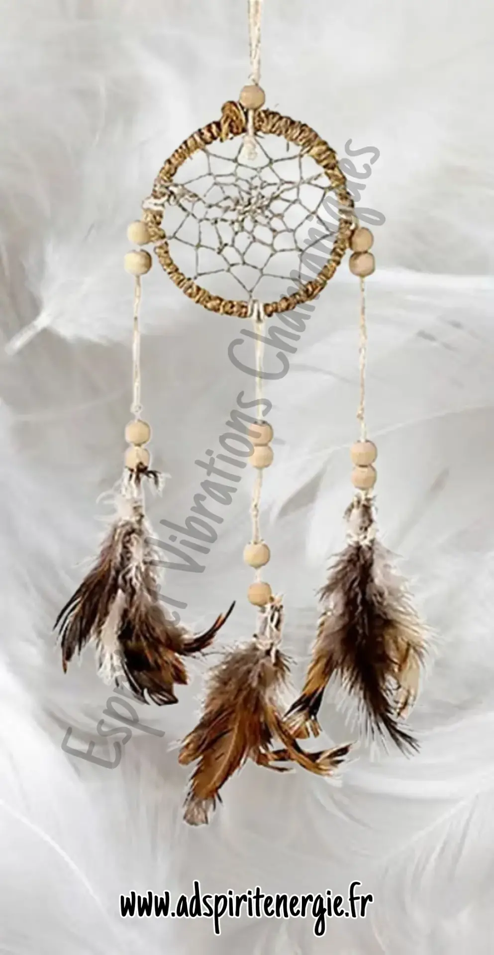 Taille cm: 20x5.5 chanvre, plumes naturels et perles en bois Pays d'origine: Népal
